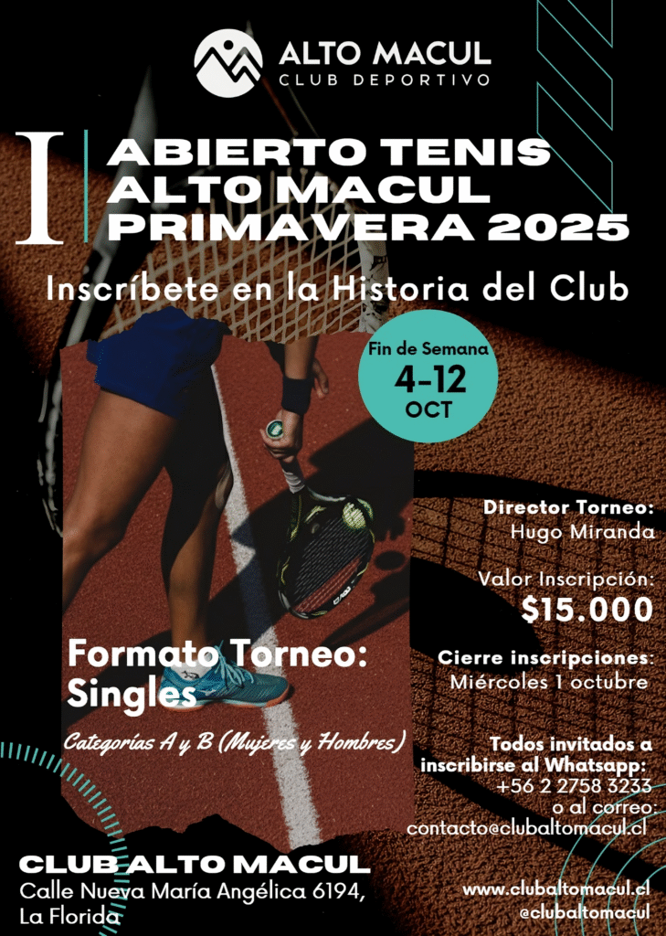 Disfruta de las canchas del Club Alto Macul en el siguiente horario: